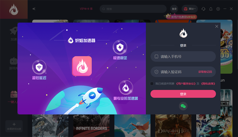 炽焰加速器是一款专为游戏网络加速的工具,炽焰加速器软件之中用户可以依靠该软件对游戏环境的网络进行环境稳定功能,可以在用户进行游戏的时候保持好网络的稳定以及轻松登录各地区的平台,让用户可以轻松玩到各个地区的大作内容。