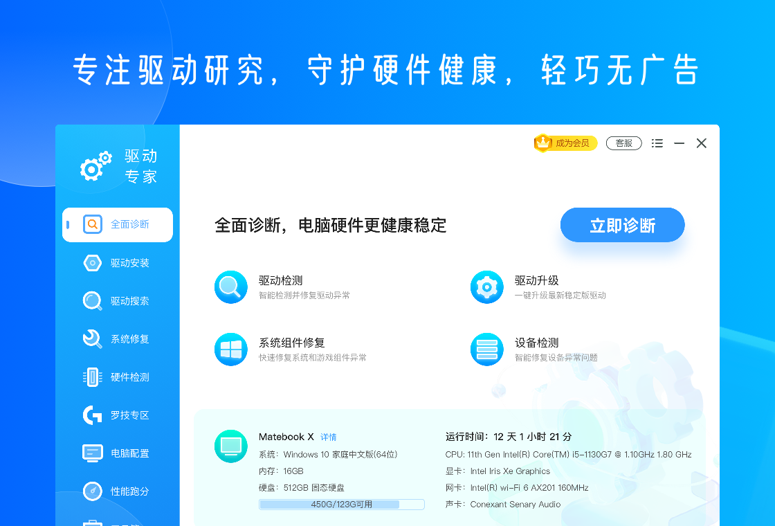 3、软件界面清新简约,操作流程简单易懂,且无广告干扰。用户在使用过程中,能够专注于驱动管理和硬件检测等核心操作,享受纯净、舒适的使用体验。简洁的界面设计和无广告的环境,提升了用户对软件的好感度和使用满意度。