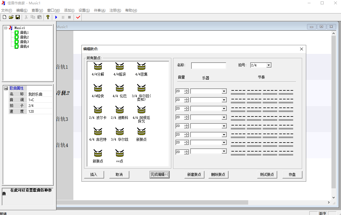 佳音作曲家是一款好用的简谱软件,佳音作曲家电脑版之中用户可以根据自己的喜好,创作各种音乐谱子,软件可以使用各种乐器,还能自主来创建各种频率鼓点,让用户可以轻松完成谱子的制作。