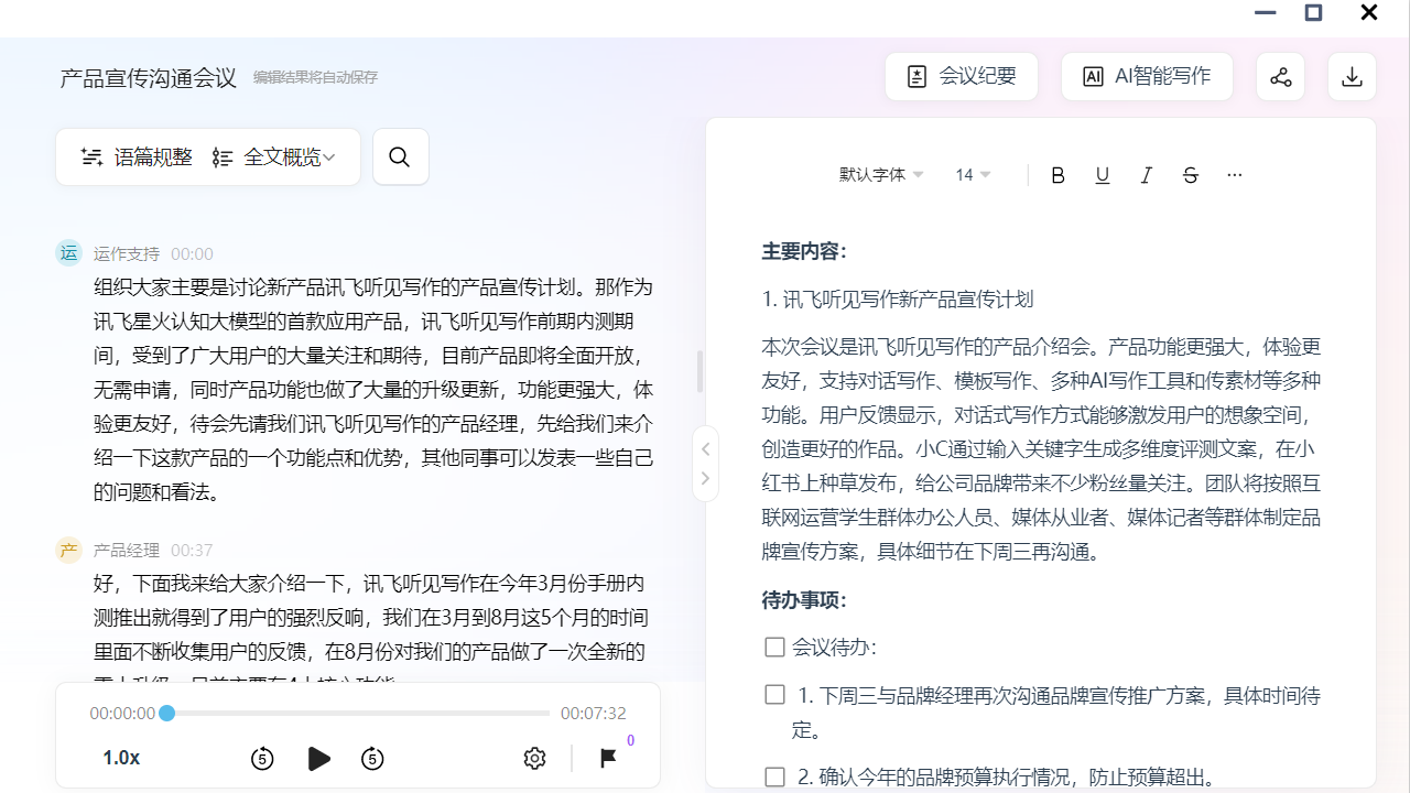 1、通过 AI 技术实现了语音转文字、翻译和智能编辑等功能的有机结合,大幅提升了工作效率。