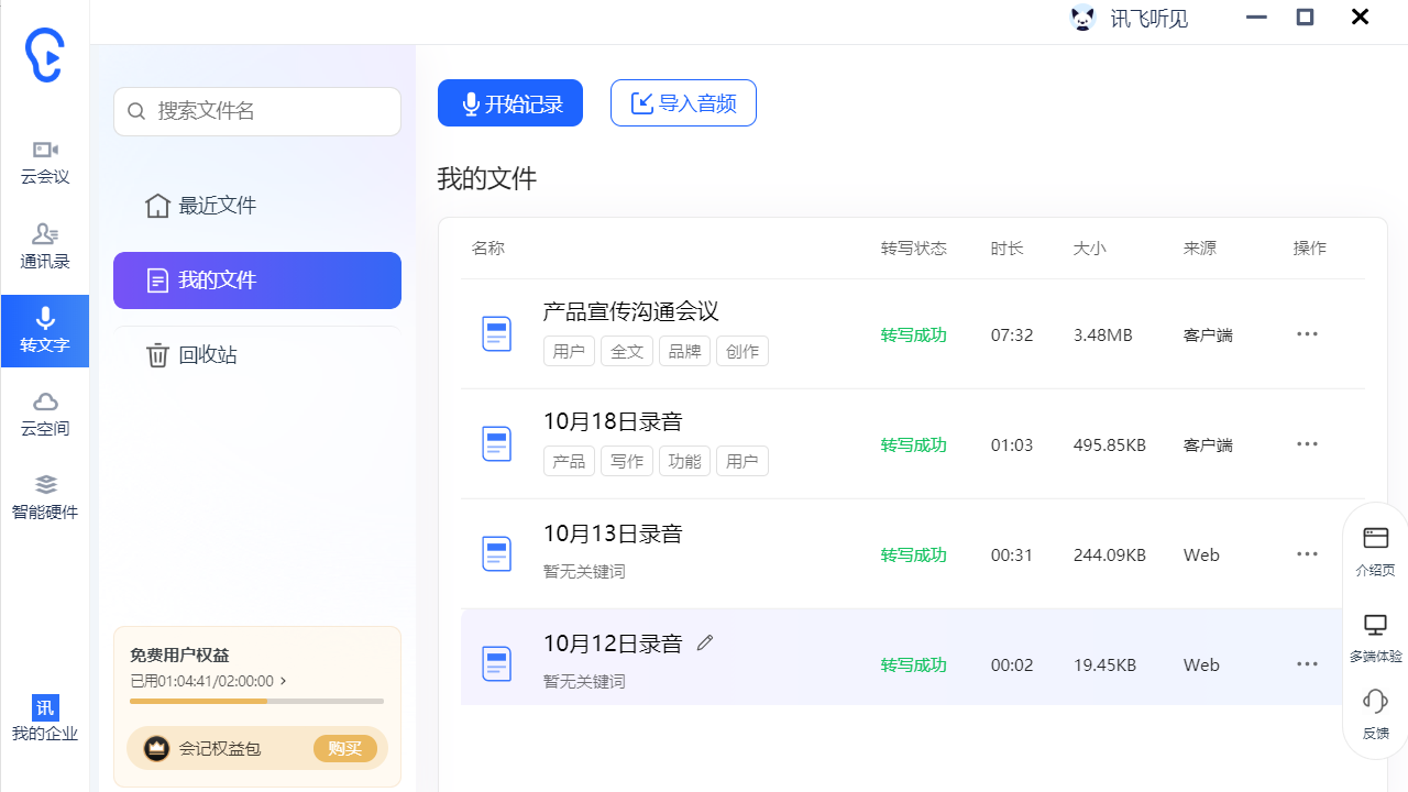 2、依托科大讯飞的先进语音识别技术,在语音转文字方面表现出色,转写准确率高,处理速度快。