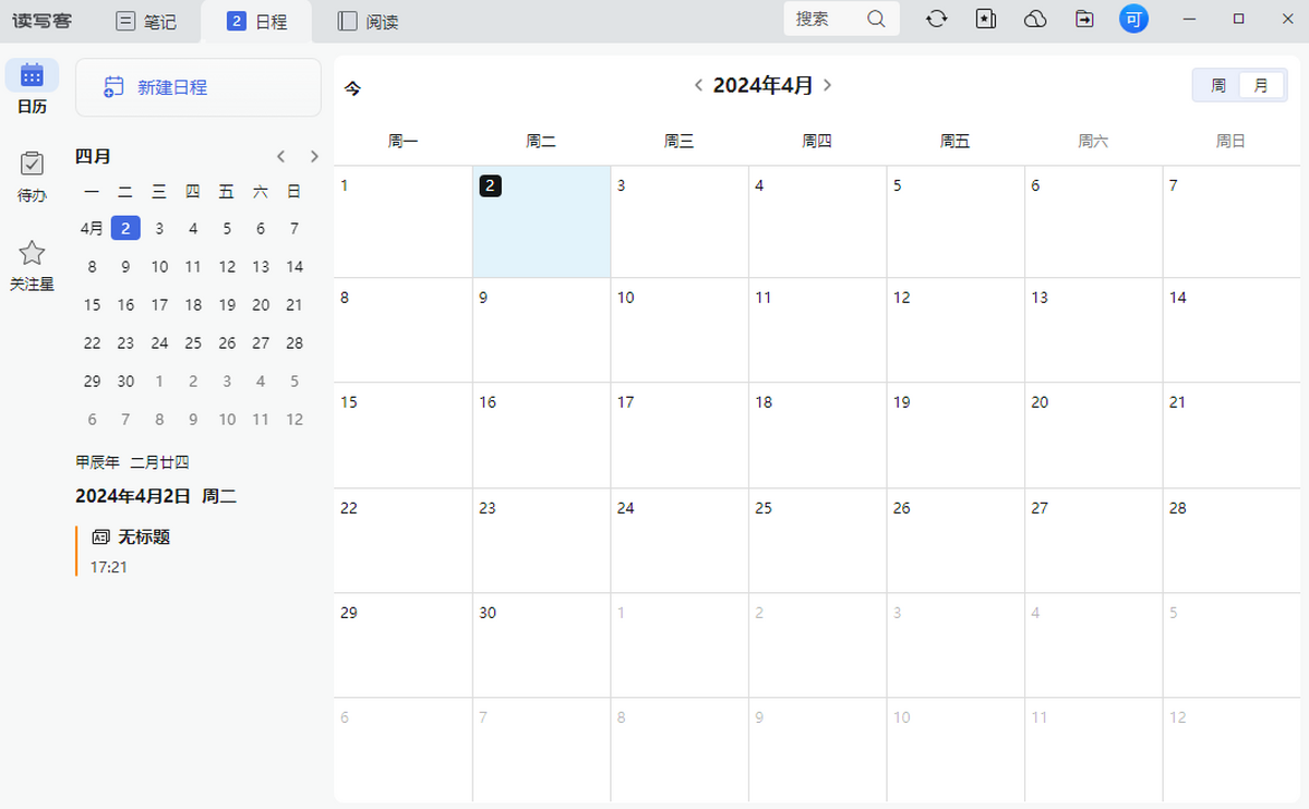 读写客除了会议记录功能之外,还具备着强大的日程管理需求,在软件之中用户可以记录下每周的工作内容以及每个月的工作目标,从而可以快速整理好工作内容,让用户可以轻松解决工作忙碌导致的疏漏。