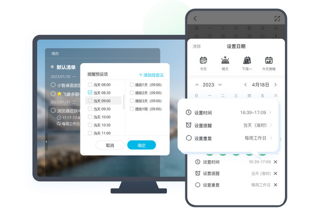 小智桌面日历不仅是简单的时间展示,更是集多种实用功能于一身。它支持全能提醒与灵活的重复设置,无论是按天的日常打卡、按周的例会安排,还是按月的重要纪念日,都能随心设置,绝不错过任何重要时刻。