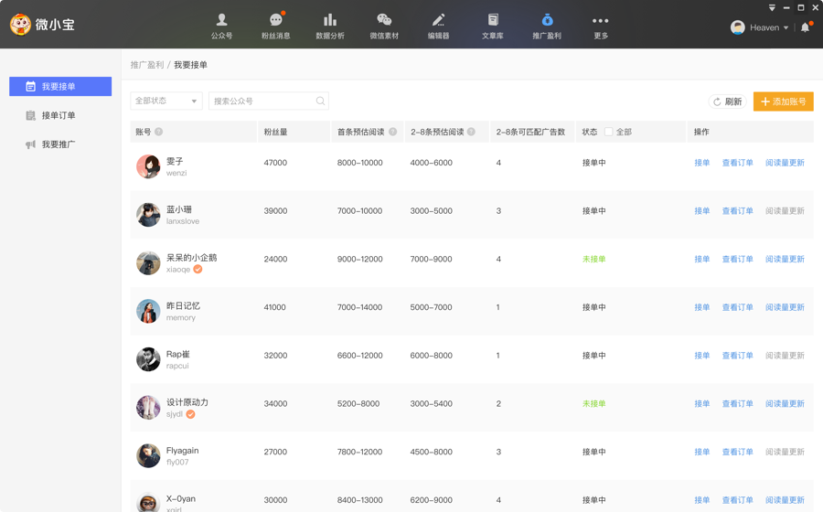 微小宝有着非常强大的管理功能,对于公众号、头条号等等内容都可以一键进行分发,并且可以同步账号数据,让用户可以轻松的完成数据查看,还有好用的账号管理需求,从而可以解决用户分析流量数据的需求。