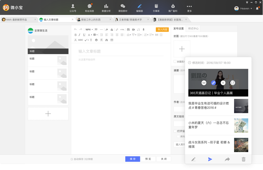 支持微信公众号、QQ公众号、新浪微博、头条号等多个社交平台,便于统一管理和发布内容。