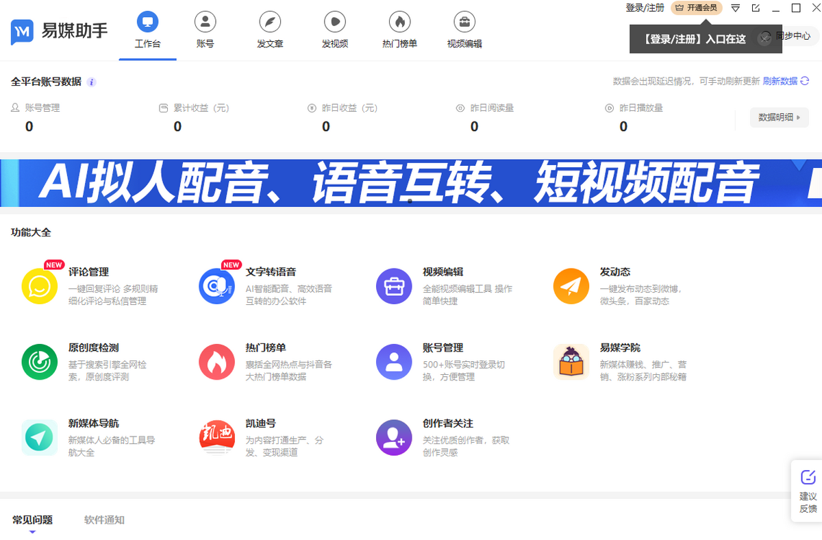 易媒助手是一款实用的自媒体管理工具,易媒助手电脑版之中用户可以在软件之中查看各大平台的热点热文,以及突然爆火的主题文章内容,然后以此来快速找到热点来进行创作,让你的流量可以更好受到更多的用户喜欢。