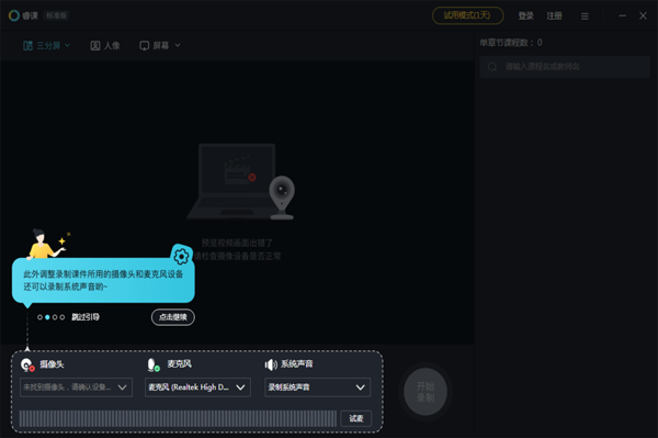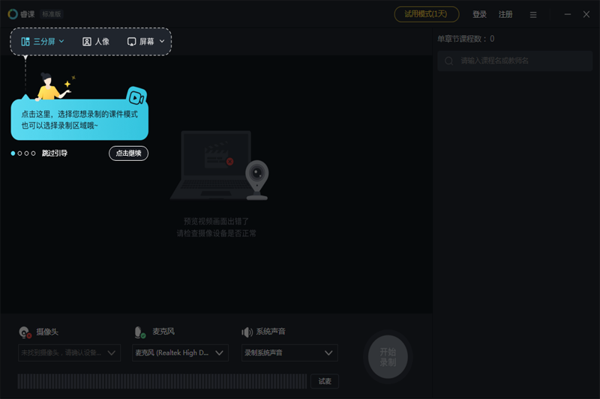 多模式高清录制:支持三分屏、纯录屏、摄像头全景三种模式,同步采集音视频、屏幕与白板操作。