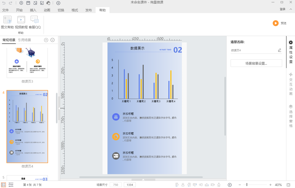 绚星微课是一款非常强大的课件制作工具,绚星微课电脑版之中用户可以在软件制作各种课程教授内容,软件有着非常多的模版内容可以使用,并且还有着PPT一般的工具,可以帮助用户快速表达自己需要说的内容,让学生可以更加轻松的学习。