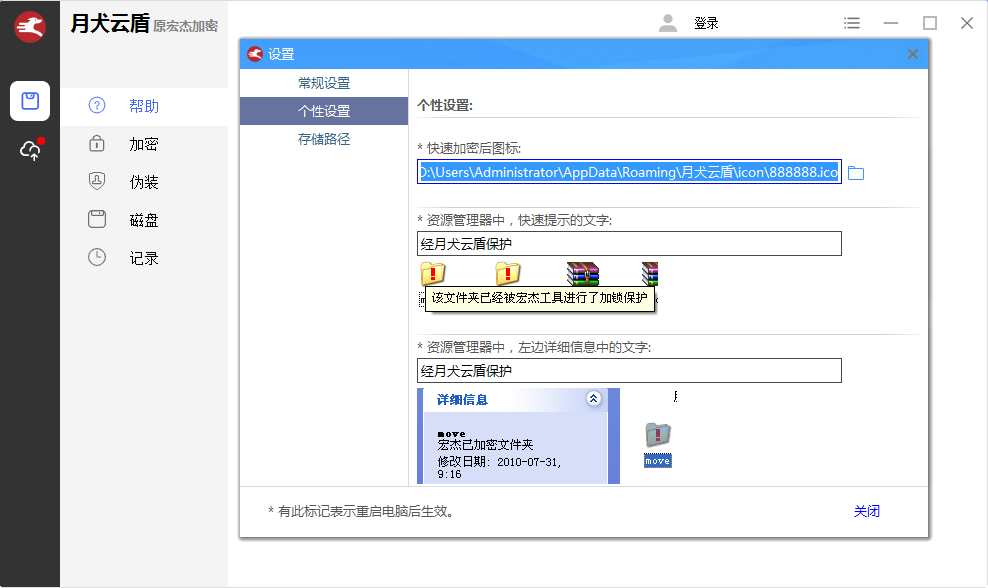 其伪装文件夹功能允许用户将敏感文件夹的图标和类型设置为“回收站”、“网络连接”等系统对象,他人打开时仅能看到伪装后的系统内容。