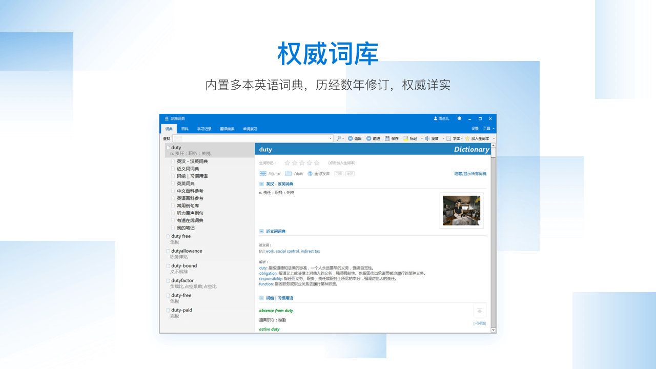 1、全面支持 PC、Mac、iOS、Android、Linux 等多种操作系统,无论用户使用何种设备,都能方便地使用该词典进行学习和查询。
