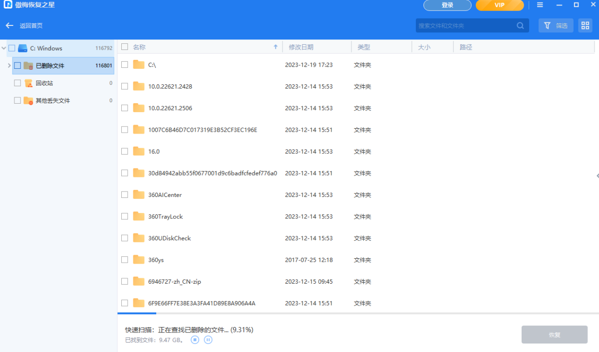 提供全方位数据恢复功能,支持误删除、格式化、系统崩溃等多种场景下的文件找回。