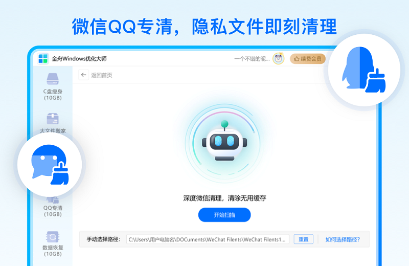 配备微信/QQ专清模块,分类清理聊天文件与缓存,彻底粉碎隐私痕迹保障数据安全。