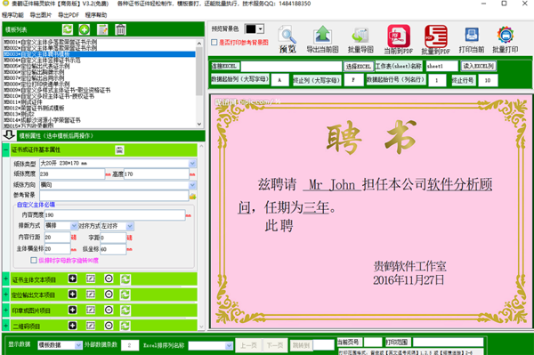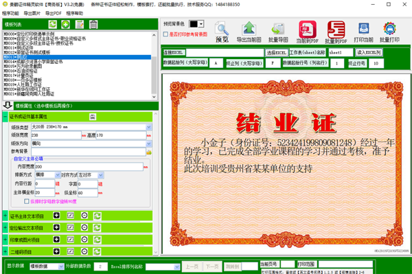 直接读取 Excel 花名册数据,自动匹配模板字段,实现成百上千份证件的批量生成、批量打印,效率提升数十倍。