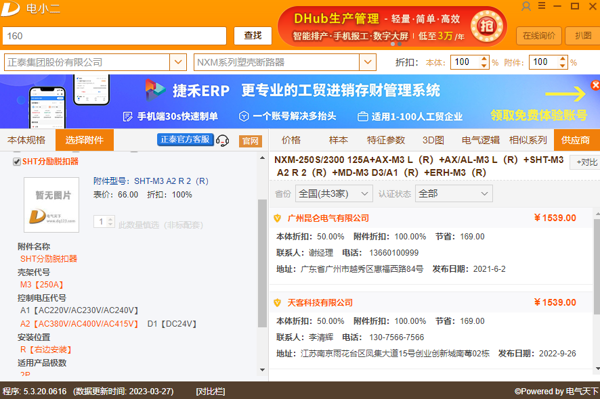 收录 300 + 常用品牌,数亿条元件型号数据,涵盖断路器、接触器、继电器等全品类,适配成套电气、工控等多领域。