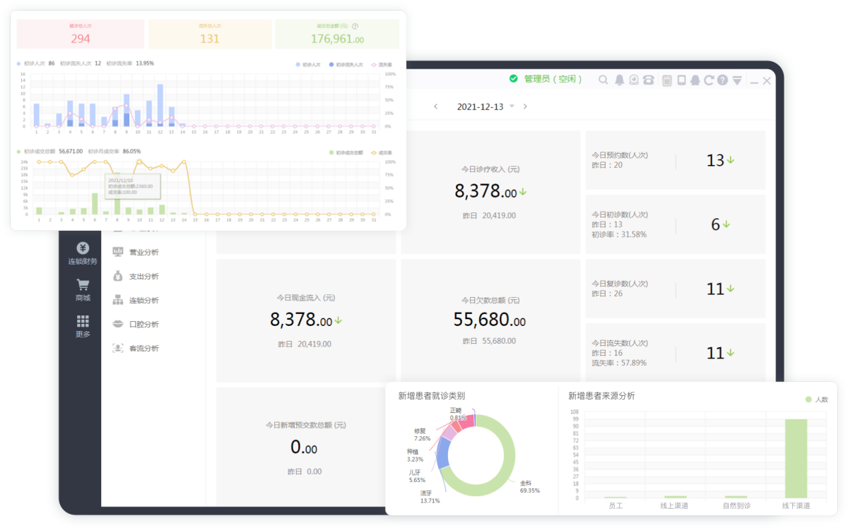 生成多维度经营分析报表,通过患者数据漏斗模型优化获客策略,辅助管理者制定科学决策。