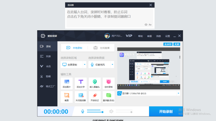 鼠标键盘设置:支持自定义鼠标显示状态、高亮范围与点击特效,实时展示键盘输入内容,在演示过程中清晰呈现操作轨迹,提升观众理解度。