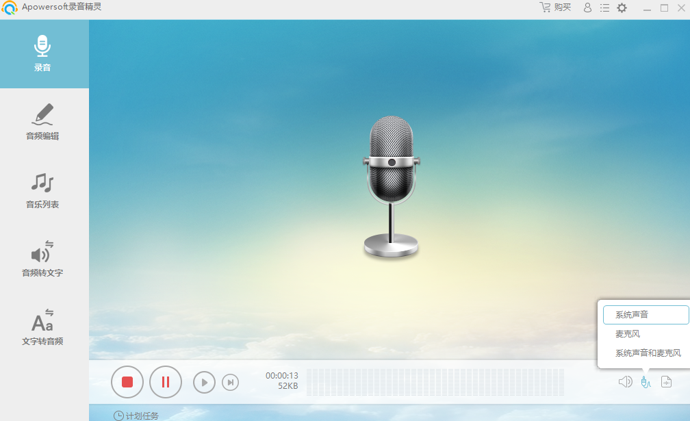 支持电脑与麦克风双音源同步录制,可输出高品质音频文件并直接分享至社交平台。
