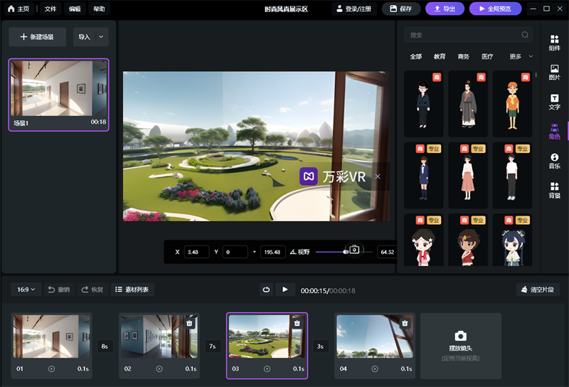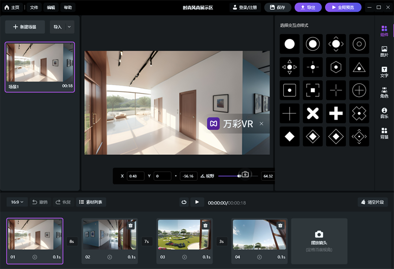 万彩VR多种预设模板和场景样式,用户可以选择自己喜欢的样式快速创建全景场景,节省制作时间,软件支持对场景中的各个元素进行样式定制,如颜色、字体、布局等,使得用户能够根据需求完全自定义场景的外观和体验。