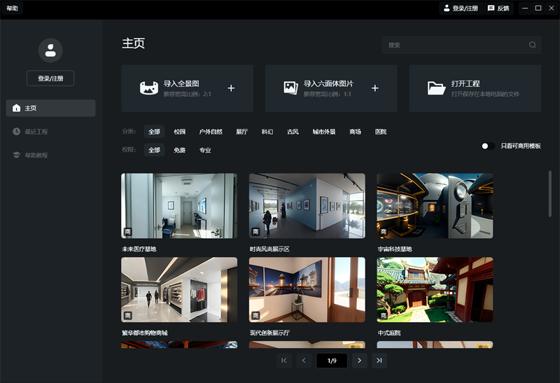 超百款预设模板,覆盖展厅、自然风光、城市建筑等主题,满足多样化创作需求。