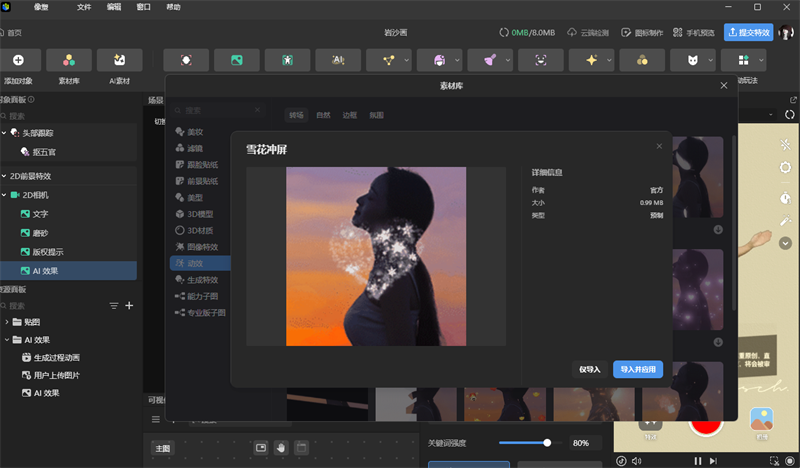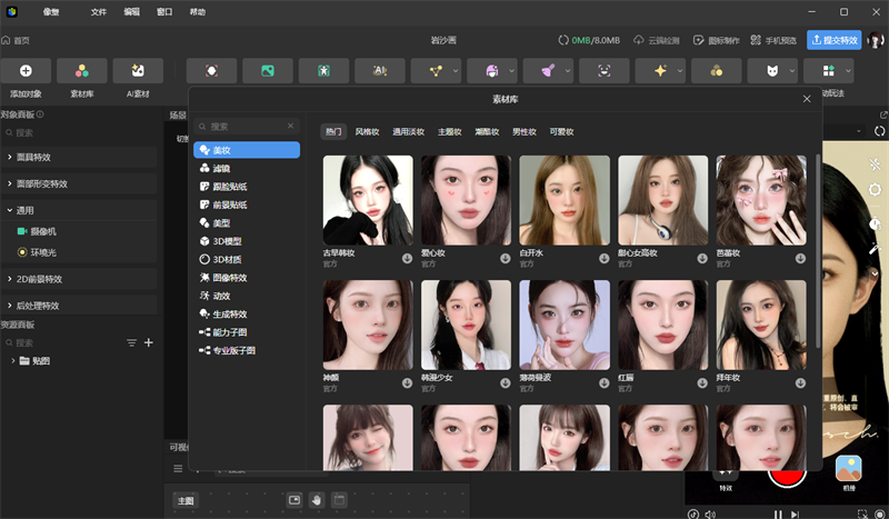 像塑提供了大量预设的AR特效模板,用户可以直接应用在自己的视频中。这些模板包含了各种风格和主题的特效,用户只需简单操作就能生成效果,平台提供了灵活的定制选项,用户可以根据自己的需要修改模板内容,比如改变虚拟物体的颜色、形状或位置等。