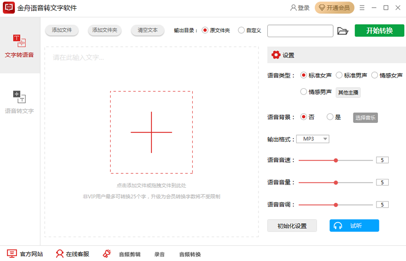 金舟语音转文字软件是一款好用的语音转换工具,金舟语音转文字软件电脑版之中用户可以在软件之中翻译各种语音内容,可以将视频、音频等内容进行文字译制,非常强大,支持长媒体文件,还可以对音频内容进行一定的编辑,基本可以满足音频工作者们部分需求。