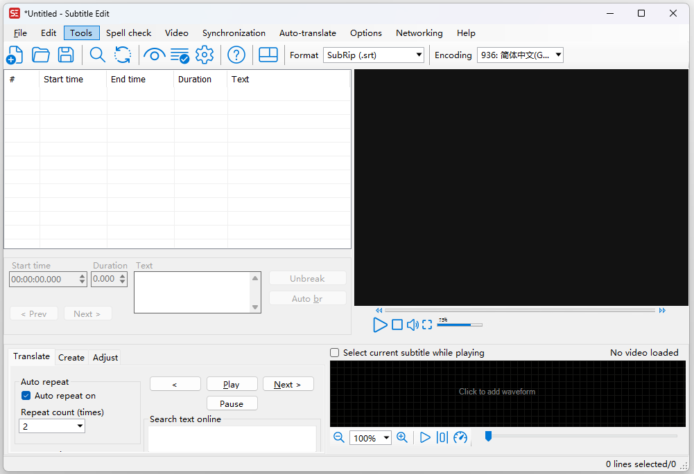 Subtitle Edit主要修复方式是通过音频波形图或频谱图来辅助设定字幕的位置和停留时间,方便用户精准定位字幕,用户也可以在编辑字幕的同时可以实时预览视频,确保字幕与视频同步。