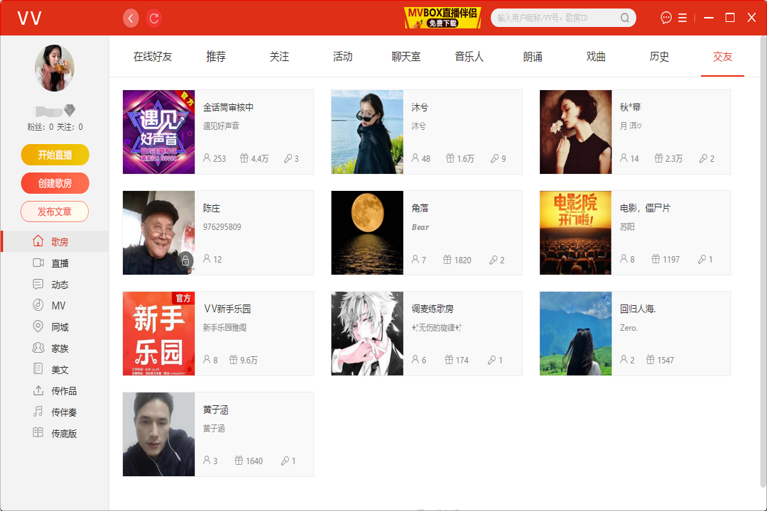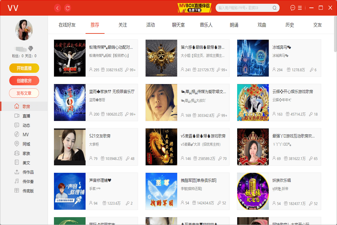 VV音乐是一款内容丰富的直播软件,VV音乐最新版之中用户可以在软件之中和里面的主播进行互动,在好这里有着非常多种类的直播内容,用户可以挑选自己喜欢的类型进行观看,软件支持高清画质,让用户享受到最佳的直播画质。