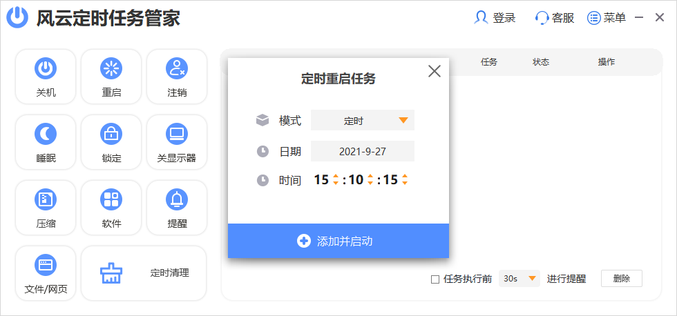 风云定时任务管家是一款很好用的电脑管理工具,风云定时任务管家电脑版可以直接制定每天电脑开关机的时间,并且软件可以帮助用户进行设定好定时任务以及使用倒计时功能,让用户可以精准的做好时间管理,可以在忙碌的生活之中做好每一件事。