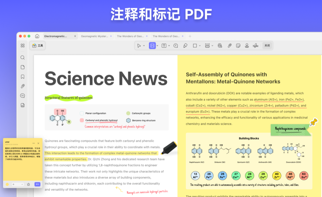 UPDF阅读器提供丰富的注释工具,支持高亮、文本框、自由绘画、下划线等多种标记方式,方便在文档中添加批注,用户可以在团队中共享和讨论 PDF 文档,通过注释功能进行合作。