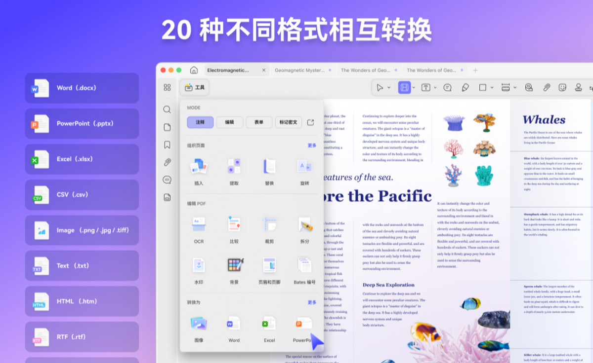提供丰富的注释工具与页面管理功能,支持合并、拆分等文档操作