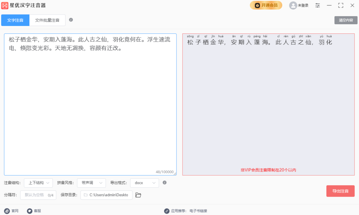 该文字注音软件支持百万字级别的大容量文本处理,可一次性完成整本电子书或长篇文档的注音工作。