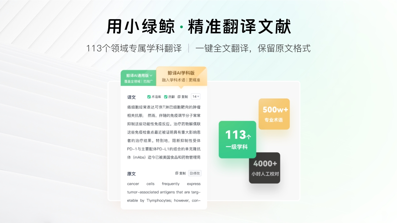3、专门构建的 113 个一级学科翻译引擎,针对不同学科的专业术语进行了针对性优化,确保翻译结果准确无误且符合学科专业性要求。
