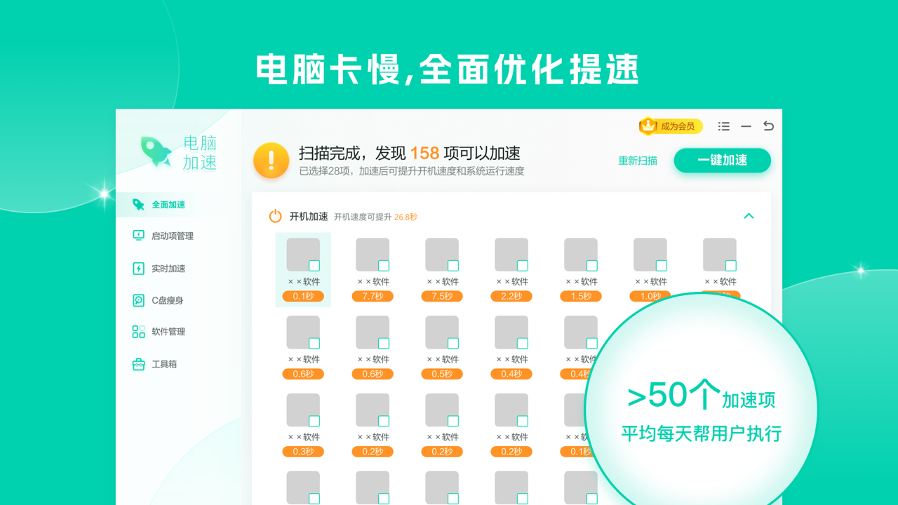 1、能够智能且精准地识别出系统中不必要的启动程序,并支持用户将其禁用,从而有效减少系统的启动时间,使电脑能够更快地进入可操作状态。