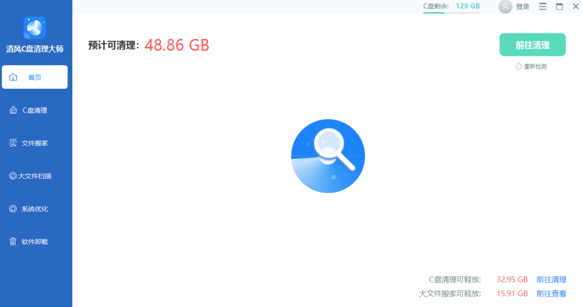 清风C盘清理大师专注Windows系统磁盘空间清理与优化的工具,软件可以通过智能扫描、精准识别和深度清理系统垃圾文件、冗余数据以及无用缓存,帮助用户快速释放被占用的磁盘空间,提升系统运行速度。