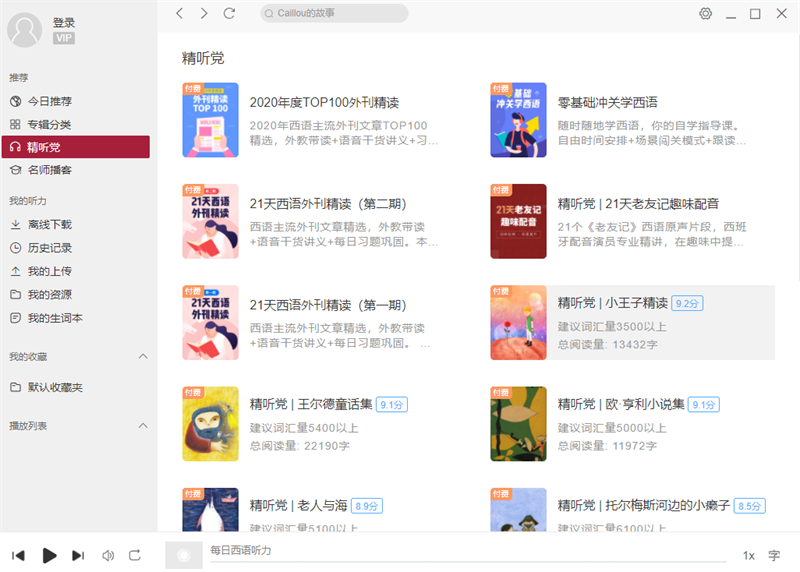 每日西语听力是一款有着非常强大的学习检验能力的软件,每日西语听力电脑版需要用户进行跟读学习的软件,软件可以检测用户的学习成果,无论是测试还是听力读写都是有着非常不错的打分功能,让用户可以时刻检验好自己的学习成果。