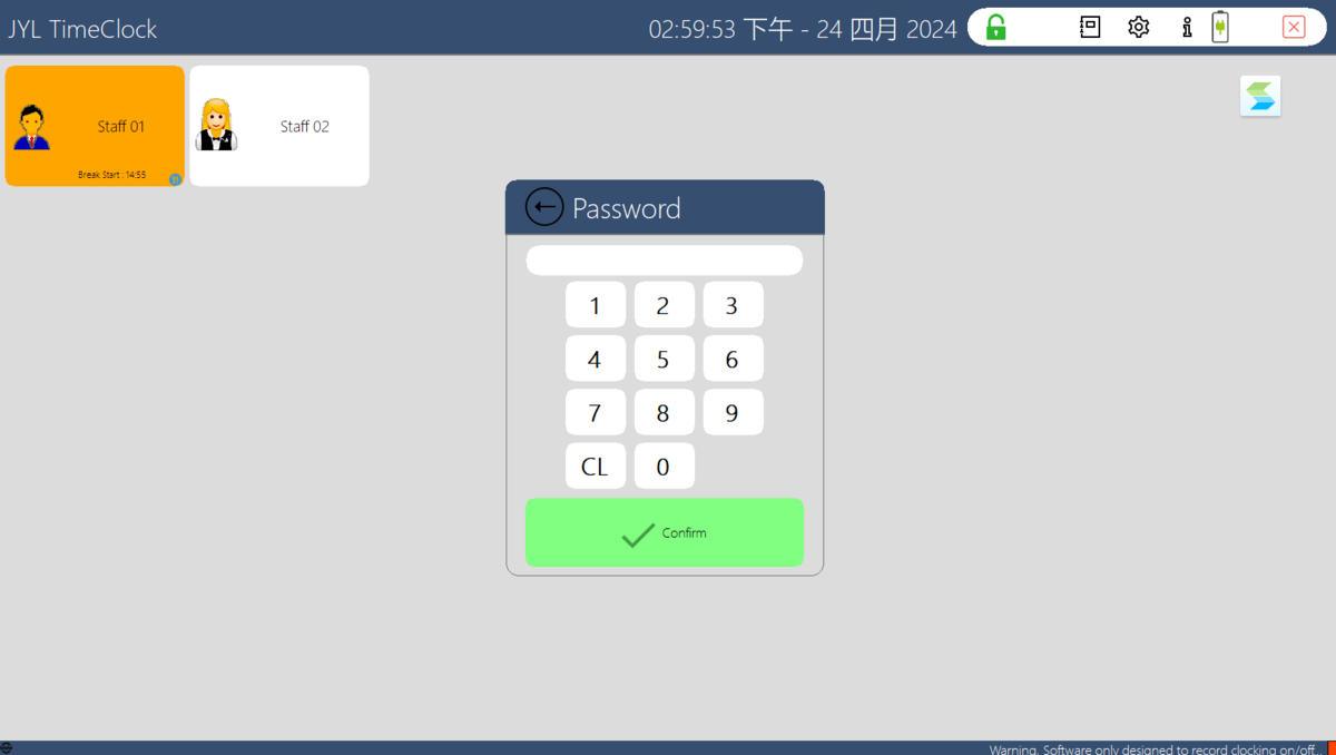 JYL TimeClock界面简洁直观,操作流畅,用户可以轻松上手,快速进行设置和管理,支持多种主题和颜色选择,用户可以根据个人喜好自定义界面风格。