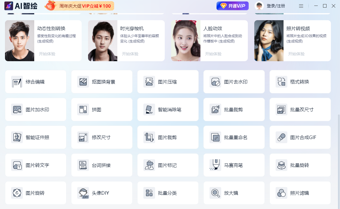 包含基础图片编辑与批量处理工具,兼顾创意设计与高效操作需求。
