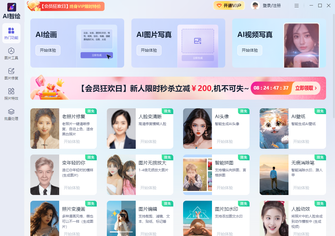 具备智能人像处理能力,包括一键抠图、美颜优化及老照片修复等实用功能。