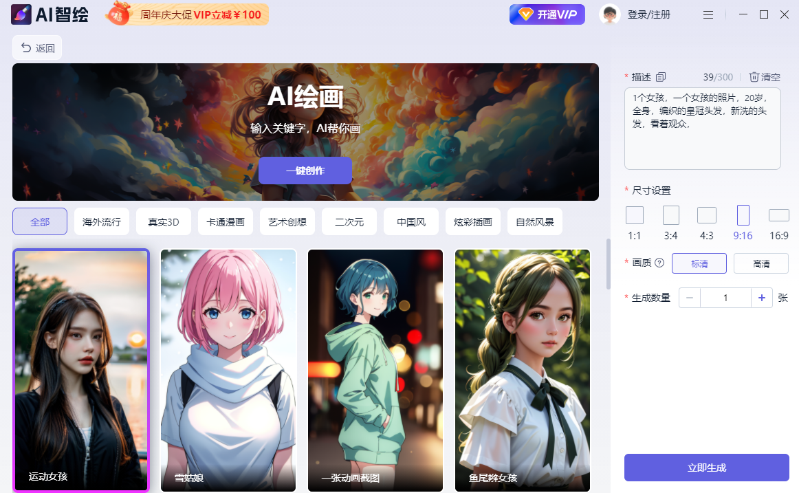 AI智绘通过降低艺术创作的技术门槛,为用户提供高效、多样的视觉内容生成解决方案,界面简洁直观,无需专业绘画基础即可快速创作,适合设计师、内容创作者、艺术爱好者等广泛群体使用。