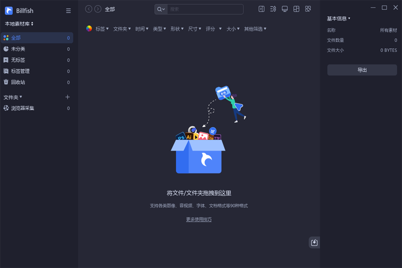 Billfish素材管家是一款很好用的素材内容,Billfish素材管家电脑版之中用户可以在软件之中接管设备之中所有的素材内容,软件可以自主对照片、视频等等内容进行自动分类,还可以保存用户发现的灵感素材内容,让用户可以轻松收藏分类需要的内容。