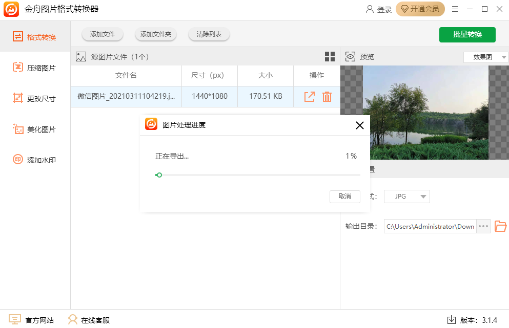 金舟图片格式转换器专注于图片格式互转、压缩、以及基础编辑的桌面端软件。软件可以帮助用户提供简单易用的操作界面和高效的批量处理能力,帮助用户快速完成图片格式的转换、体积压缩及常用调整,满足日常办公、网络传输、图片管理等需求。