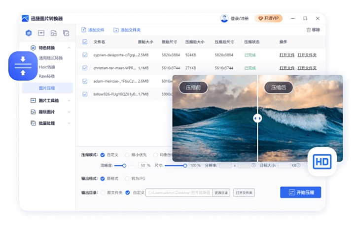 迅捷图片转换器是一款好用的图片处理软件,迅捷图片转换器电脑版之中用户可以在软件之中进行各种图片格式的转换以及图片大小压缩等等处理,支持批量文件进行内容处理,让用户可以快速完成工作,减少等待时间。