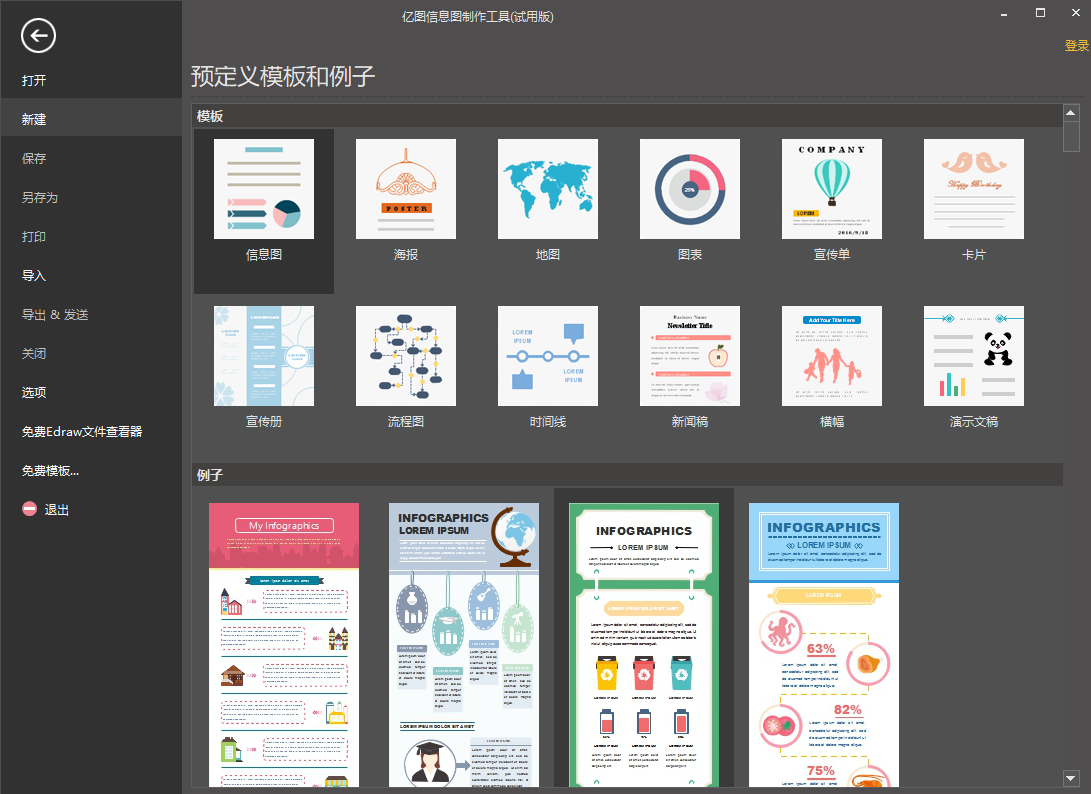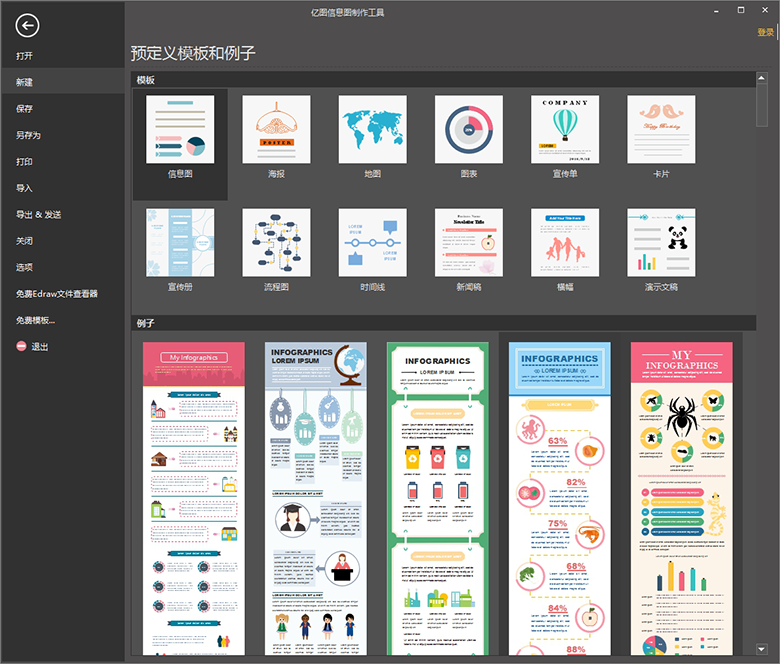 亿图信息图为用户提供了大量的预设模板,涵盖各类信息图、流程图、组织结构图、统计图表、地图、海报等,使用户能够快速开始设计并节省时间,软件可以帮助用户基于现有模板进行个性化修改,调整颜色。