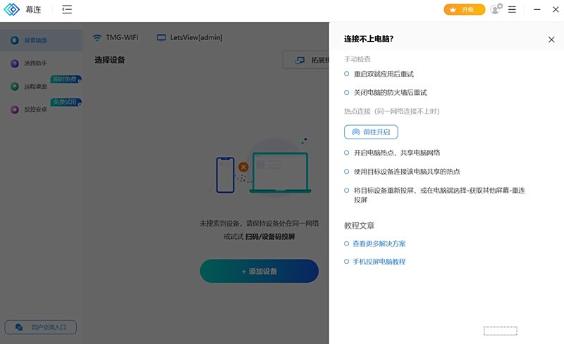 幕连是一款很好用的投屏工具,幕连电脑版之中用户可以快速做好内容投屏,软件支持手机平板以及PC等多种设备之间进行内容互动,软件可以做好实时互动,让用户可以更好进行远程操控以及内容投放。