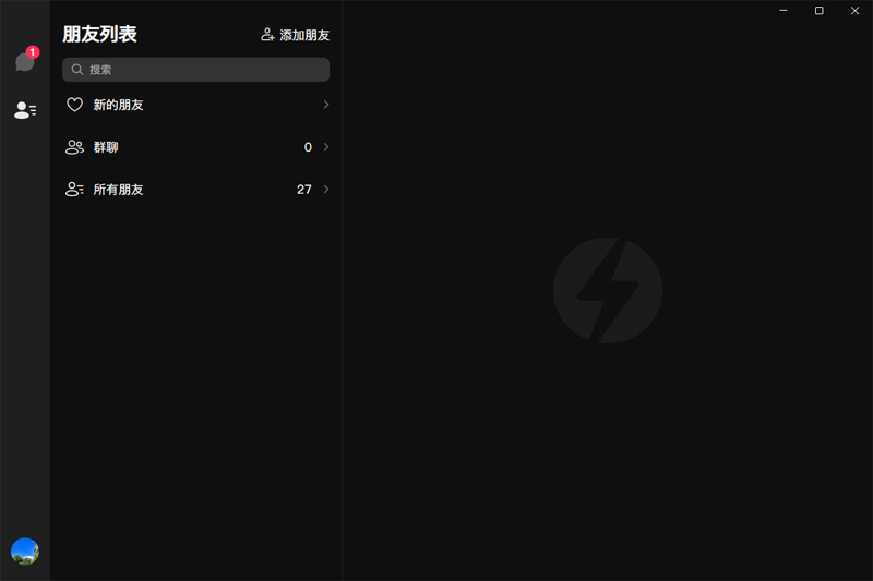 界面布局参考电脑版微信,左侧为聊天与好友列表切换区。