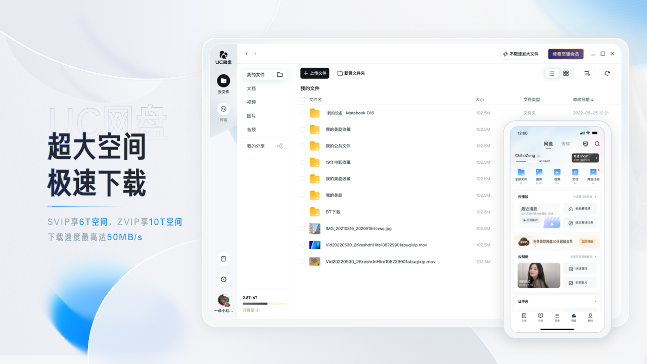 UC网盘是UC浏览器推出的一款非常强大的网盘软件,UC网盘最新版之中用户可以直接在软件之中上传各种数据,并且该软件有着非常大的免费内存,可以让用户无需充值也可以轻松使用,并且上传的数据将会一直储存在网盘之中。