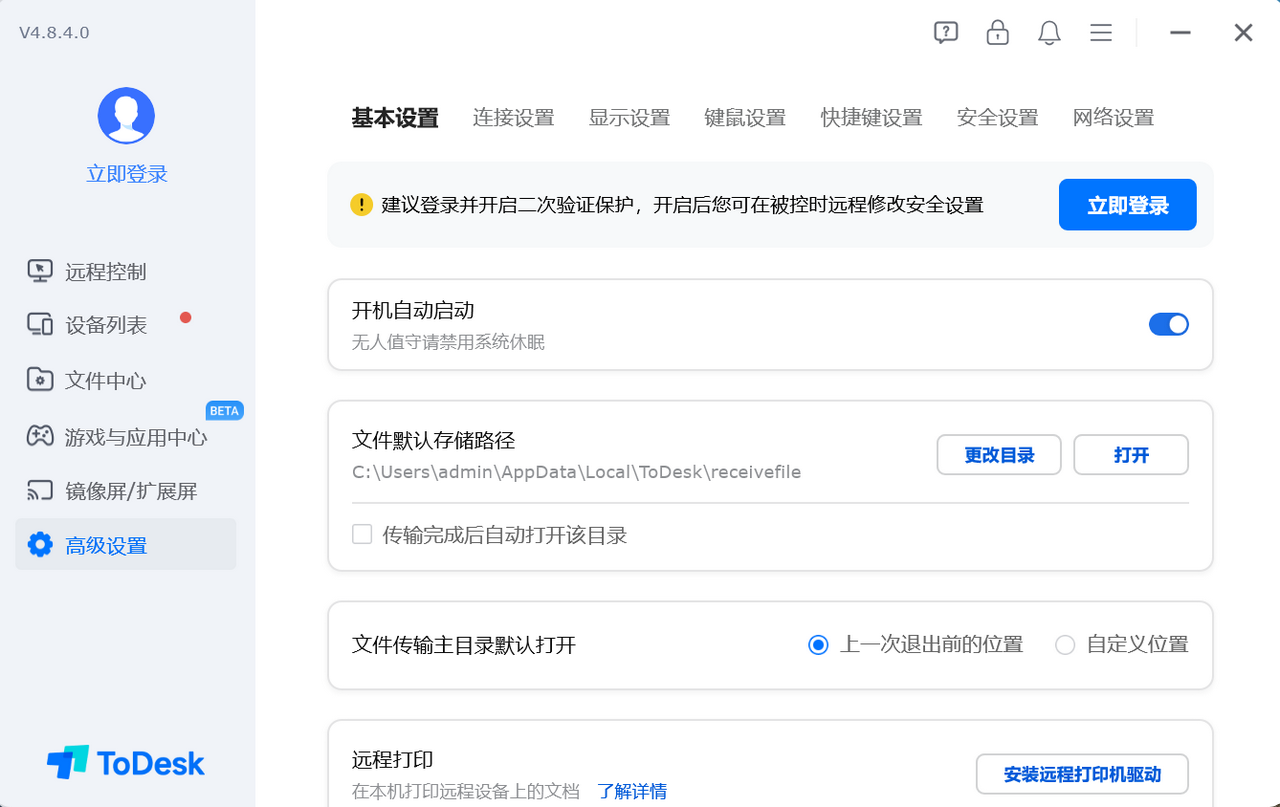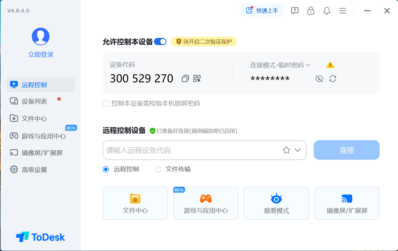 ToDesk是一款功能强大的远程桌面软件,ToDesk电脑版2026最新版提供快速的连接方式,用户只需简单的几步操作即可实现远程控制,轻松与其他用户共享桌面,进行实时协作,能够有效提高工作效率和沟通协作能力,支持不限速的远程连接,用户可以在任何时候以流畅的速度进行远程操作,适合各种使用场景。