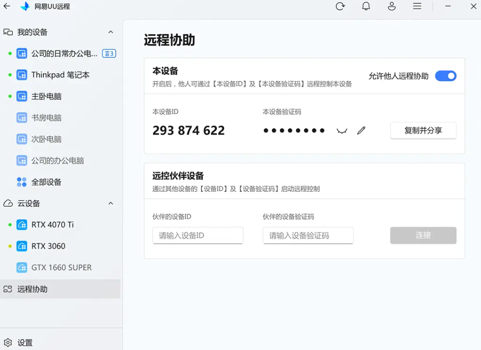 网易UU远程是一款由网易出品的功能强大的远程控制软件,网易UU远程电脑版之中用户可以在软件之中控制其他设备,连接他们的屏幕以及操作工具,软件应用于远程协助以及远程遥控等等功能,可以帮助用户快速完成工作。