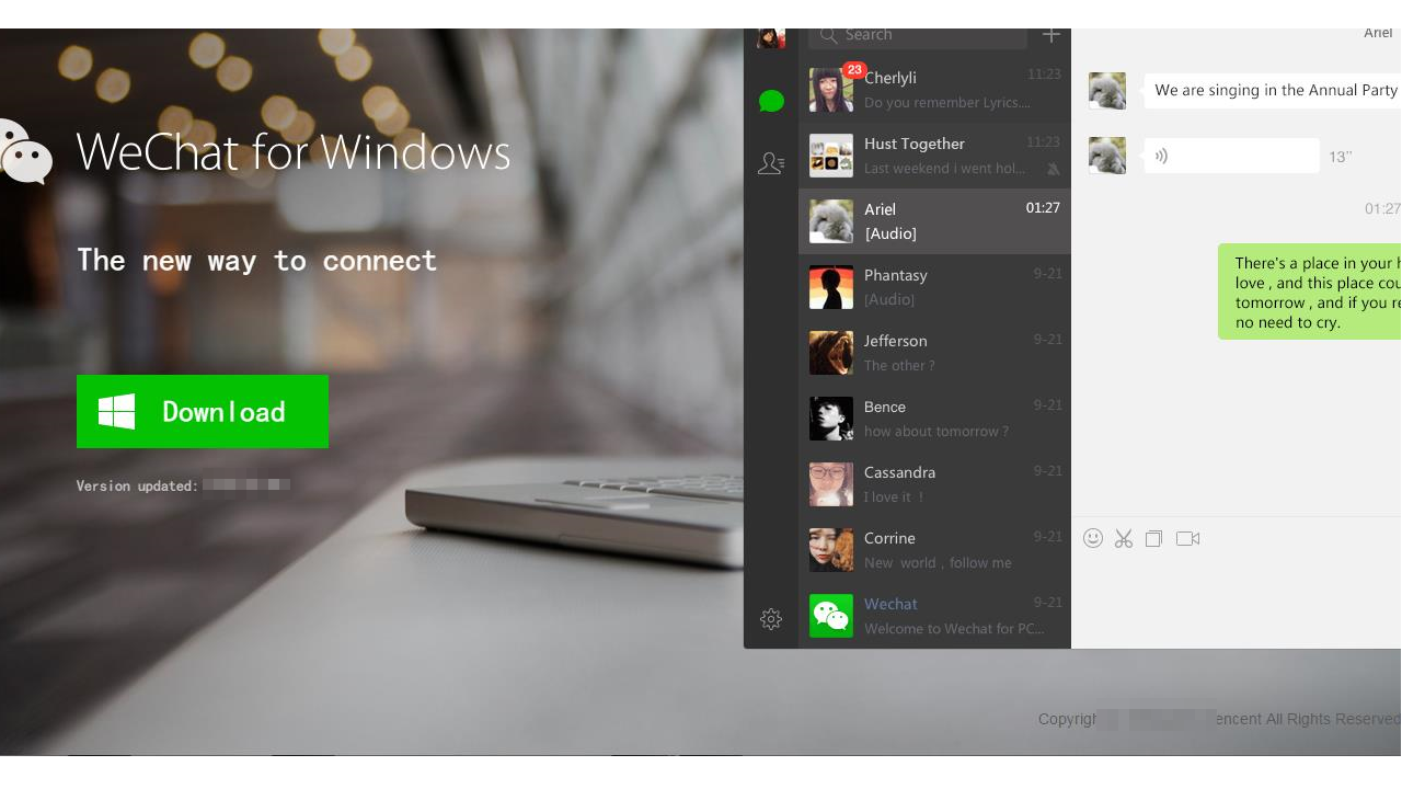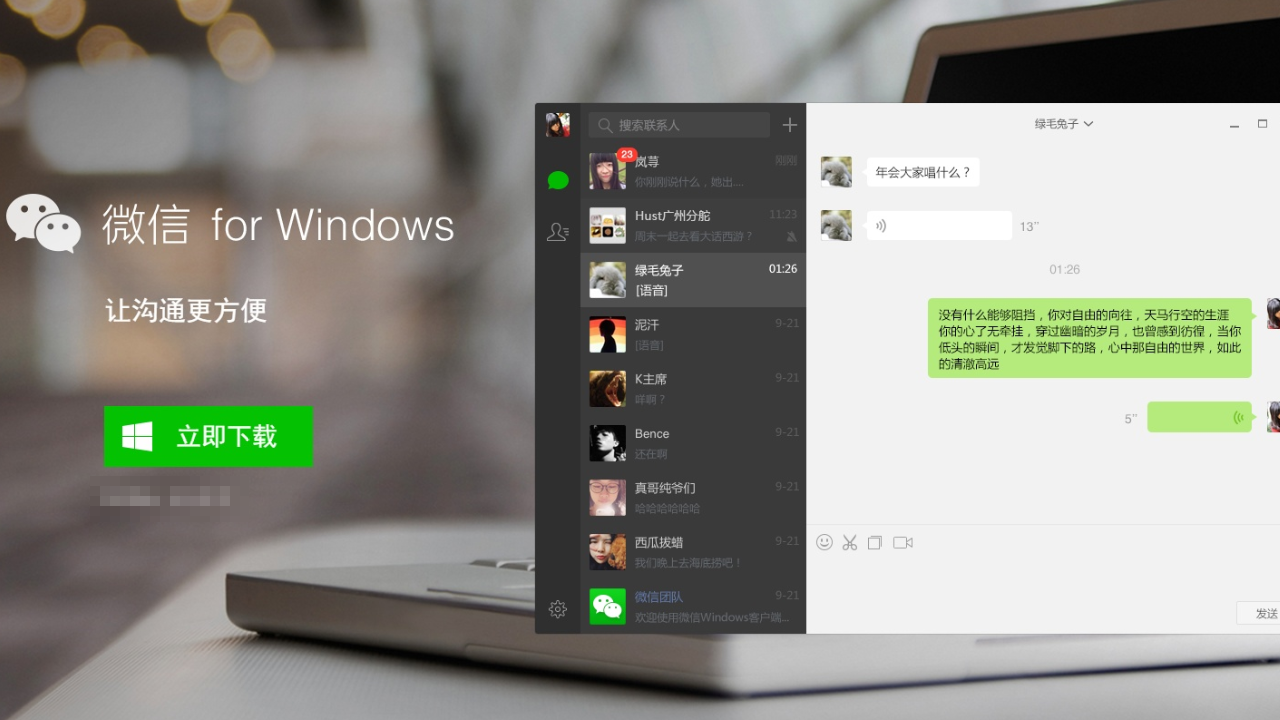 微信电脑版源自腾讯旗下全球最受欢迎的中文社交通讯工具微信的电脑版客户端,微信电脑版很好的帮助使用者们通过电脑端沟通手机端微信用户,保持实时通讯和互联互通,微信电脑版可以让正在办公的用户通过这个客户端来即使回复微信好友以及微信群的相关消息和动态,最新版微信电脑版还可以访问朋友圈和查看朋友圈消息了哦!