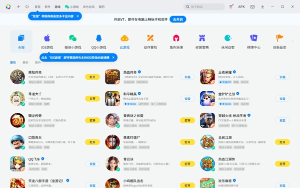 应用宝电脑版是一款专为用户提供在电脑上畅玩手机应用的软件平台,应用宝PC客户端聚合了丰富的移动应用资源,用户无论是寻找常用软件还是新兴游戏,都能轻松找到与下载,可以直接在电脑上下载和使用海量的移动应用和游戏,持快速打开和使用各种微信小程序与小游戏,使用户在电脑上也能体验到丰富的功能与娱乐。